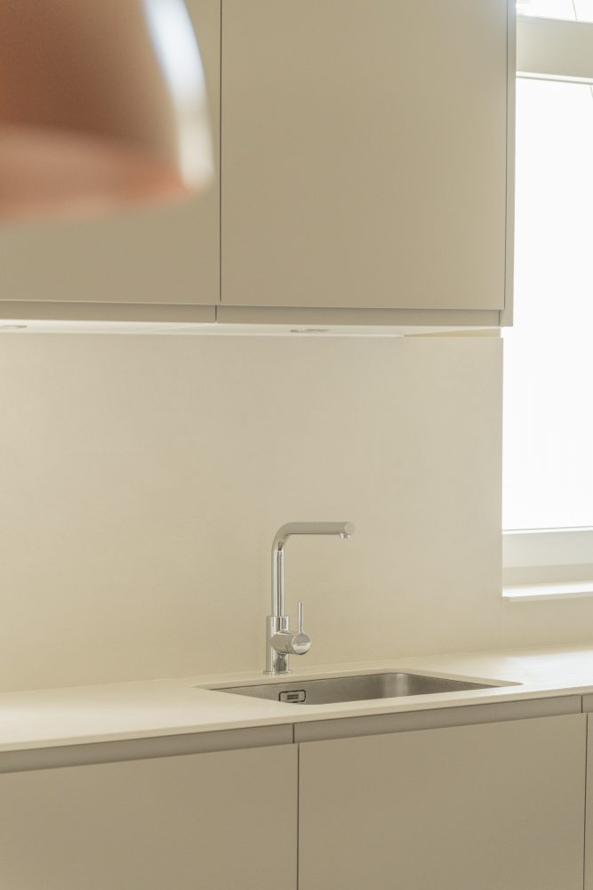 La luz penetra por sus ventanales filtrada por las persianas alicantinas de madera, inundando la casa durante toda la jornada. El espacio de día disfruta de doble orientación y una generosa altura. Las estancias, ordenadas en una banda de proporciones más acotadas, buscan el recogimiento y el descanso.
